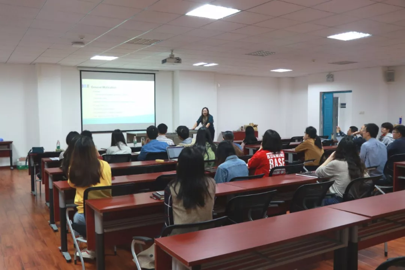 随后,缪丽娟结合近期所取得的研究成果以及所获得的各类基金奖项与大家分享她如何树立自信、挑战自我、突破自我的人生经历和科研体会。缪丽娟强调了自身努力和明晰目标的重要性,阐述了扎实的专业基础和勇于质疑的态度对留学国外科研深造的重要影响。她还通过一张张照片向大家介绍了自己在国外丰富的科研生活,以生动形象的描述帮助同学们对怎么做好自己的学术生涯规划,实现自己的学术理想等有了更加深刻的了解。