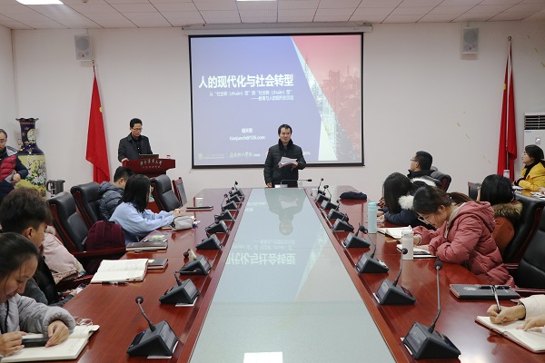 12月10日晚,南京师范大学程天君教授做客我校第110期公共管理论坛,在人文社科楼M101为带来题为“人的现代化与社会转型”的报告,根据相关实例与数据详细分析了中国在发展过程社会转型的表现及特征,报告会由司机会所