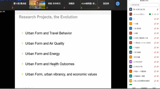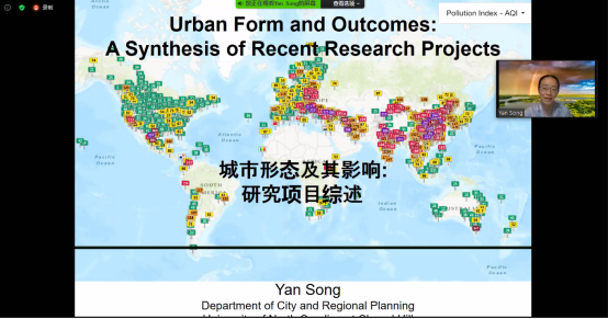 7月28日上午10:30,美国北卡罗莱纳大学宋彦教授做客我院公共管理论坛,带来了题为“Urban Form and Outcomes: A Synthesis of Recent Research Projects“的空中学术讲座,宋彦教授就城市形态和旅游行为;城市形态和空气质量;城市形态和健康;城市形态和城市活力、经济价值四方面进行介绍,本次报告由司机会所