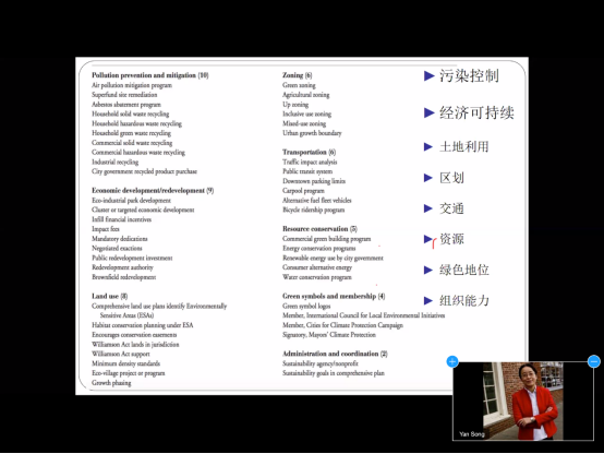 报告开始,宋彦教授首先提出美国城市空间治理当前的特点,一是不再以土地类别做区划,而是从形态出发去约束城市的规划;二是由之前的刚性规划转变为更具灵活性的规划;三是由排他性规划转变为包容性的空间规划。对于空间治理政策的目的,宋彦教授提到,它可以使城市拥有好的形态,使人们拥有高生活品质,可以保护自然及历史资源、保证社会公正性、降低地方财政危险等。而要达到这个目的,可以通过法规、土地征收、公共投资、奖励措施、税收及交通等工具来助力政策的实施。接着,宋彦教授举出调查案例并展示了其计量分析的结果,得出美国城市开发形态将更偏向于高密度、功能混合以及紧密的交通连通性。随后,宋教授介绍了有关城市形态及其影响的一个研究项目综述,包括污染控制、经济可持续、土地利用、区划、交通、资源、绿色地位、组织能力等八个方面。最后,经过论述,宋教授总结到,未来的城市规划将朝着更具多样化、灵活化、形态化、协调化、可控化的方向发展,美国城市规划师应相应做出调整,才能够应对城市发展所产生的经济社会与环境各方面的挑战。