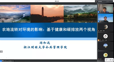 接着,游和远教授分享了研究过程中的感受与未来研究方向的展望:以健康风险与土地流转为主题的选题从数据获取到论文发表难度很大,需要权衡个人兴趣与研究热点,希望在读研究生不惧困难、攻坚创新;在双碳战略下,从碳排放到碳中和的深入和分析尺度的把握是未来的科研工作者需要考虑的。