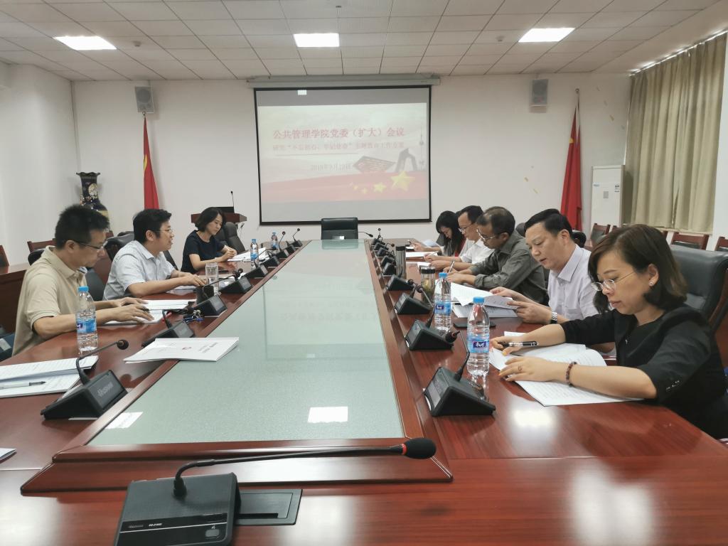 在人文楼召开党委会扩大会议,专题研究“不忘初心、牢记使命”主题教育工作方案,司机会所