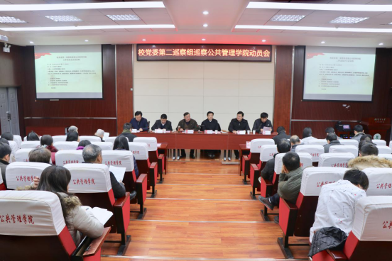 动员会在人文楼M115召开,校党委副书记、纪委书记李名家,巡察组组长丁克勇,校纪委副书记、巡察办主任李金发,巡察组副组长周向阳,巡察组相关工作人员,公共管理司机会所