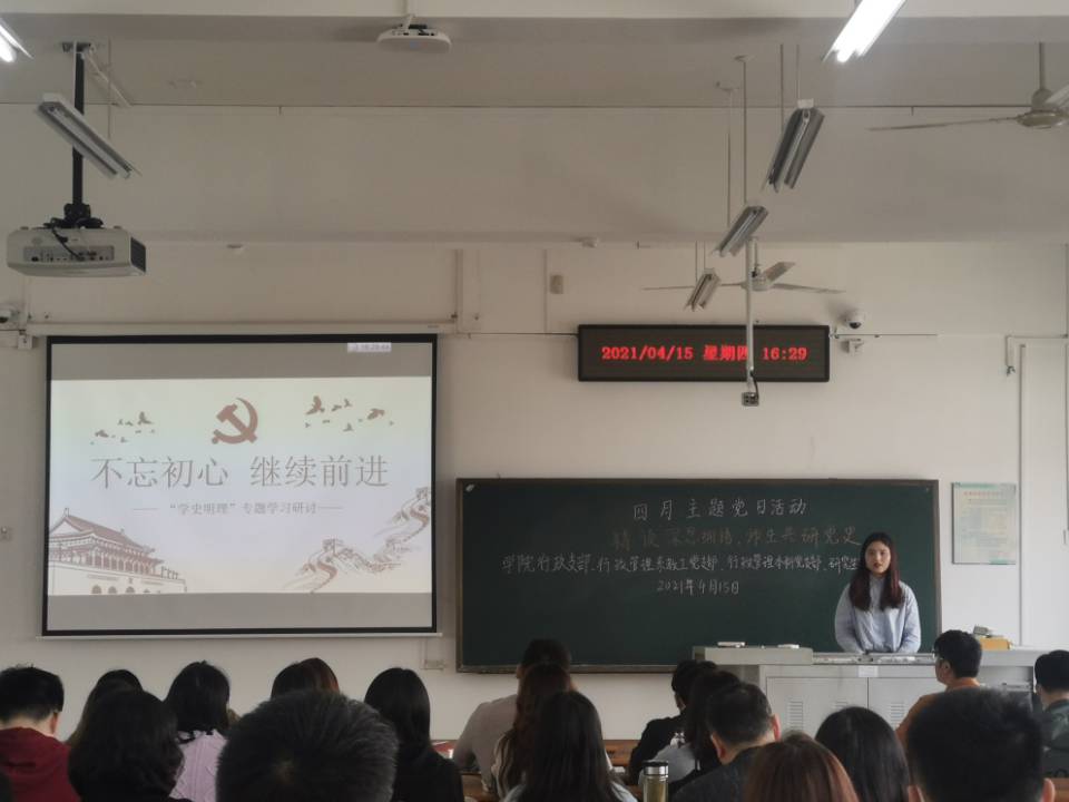 党史学习教育系列活动。“以全面学习党史为重点,结合学科专业实际梳理中国共产党在土地治理、乡村问题和国家治理等方面的探索和实践”“围绕‘青春正能量,公管暖色调’,在党史学习教育活动中推进师生支部联学联建,积极开展实践教育活动,丰富三全育人内涵。”党委委员热烈讨论,党委理论中心组带头学习打烊,发挥示范作用,开展党的奋斗史专题研讨分享。各支部学习安排在自学基础上充分做好集中研学准备,司机会所