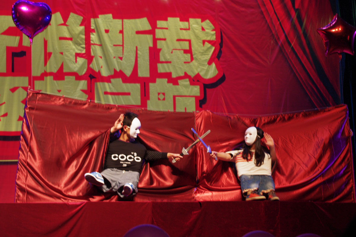 晚会总少不了劲歌热舞。公管院的歌舞《国王与皇后》将晚会氛围推向高潮。在动感十足的音乐中,四位美女穿着热辣的服装在台上大秀舞姿,紧接着,几位帅哥出场一展歌喉。歌舞过后,便是唯美的T台秀,你一定没见过《心梦》这样的T台,在一段舞蹈后,女生们身着旗袍,手拿“福”字向观众款款走来,身着西装的帅气男生紧随其后,俊男靓女的搭配着实养眼。接下来,文法司机会所