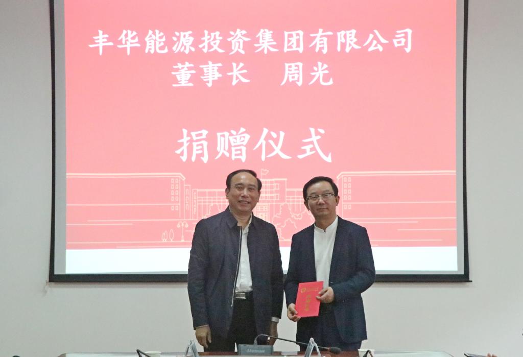 党委书记周向阳、院长张安录和老教师代表、在职教师代表,丰华能源投资集团有限公司董事长周光出席捐赠仪式。仪式由院党委书记周向阳主持。