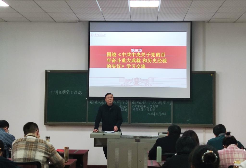 随后,全体党员开展“学史力行”专题研讨。姜庆志同志提出要把理论运用到改造主观和客观世界,把经验融入到“修身、齐家、治国、平天下”的历史文化中。做到“真学真行”,要及时学、准确学、深入学、有效学;要锤炼政治品德,严格修身立己,为师生服务力行,为国家战略大政方针所行。