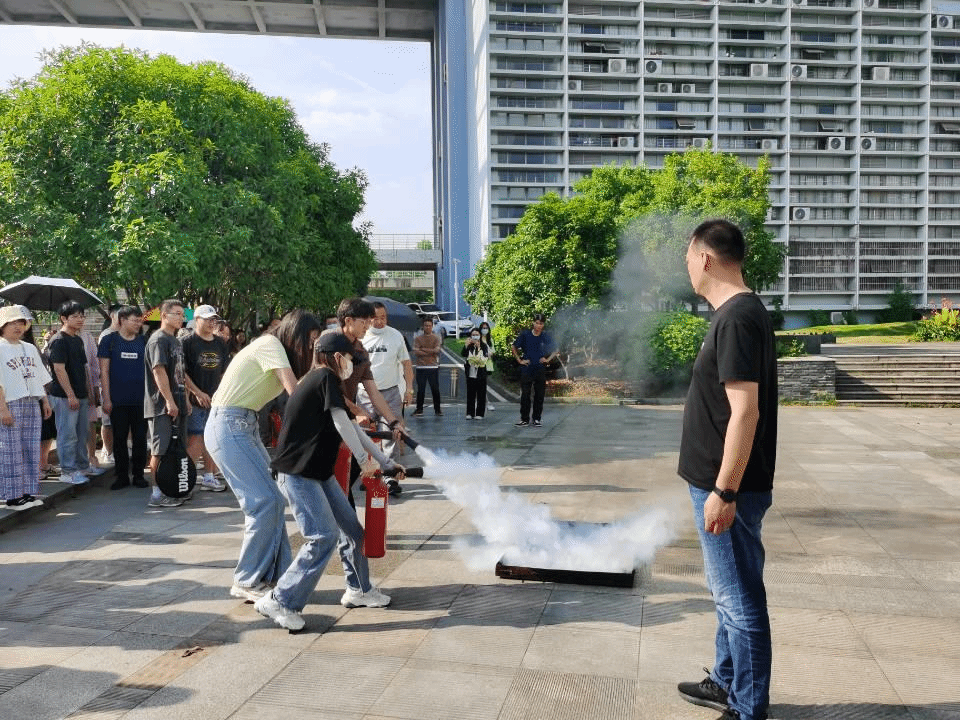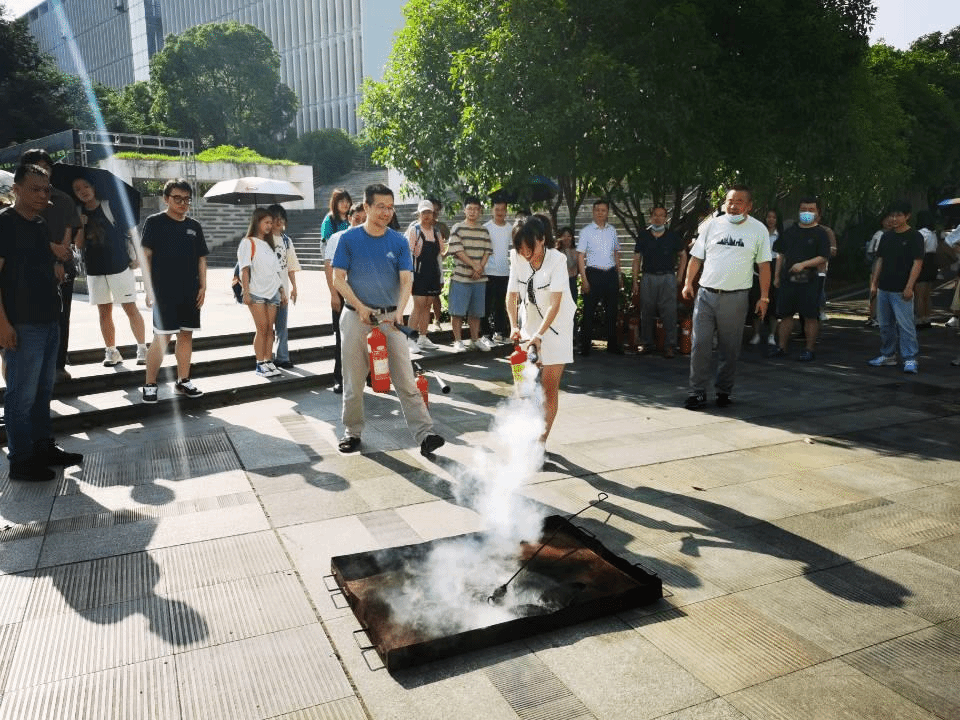 演练前,建安部黄青松主任和孙勇老师向师生讲解了火灾的主要特点和灭火器的使用方法,现场演示了二氧化碳灭火器的使用要领,并让师生现场动手使用灭火器进行灭火。参与的师生都能按照要求使用灭火器,达到了演练的预期效果。