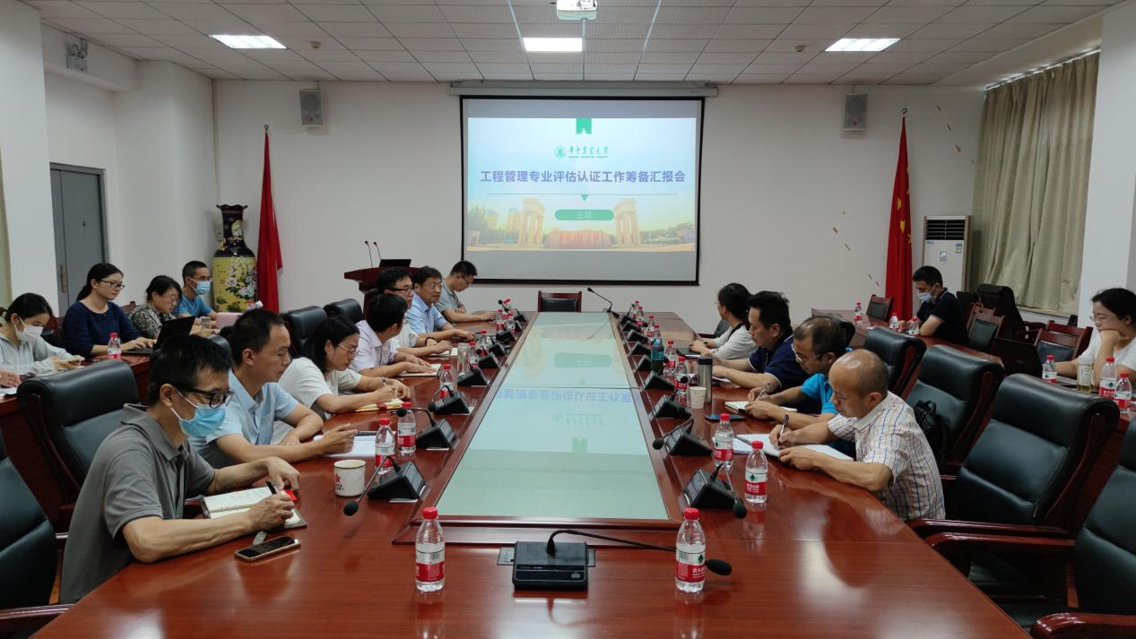 在人文楼M101会议室召开工程管理专业评估认证工作筹备汇报会,本科生院质量与评估处处长肖湘平和曹震老师,司机会所