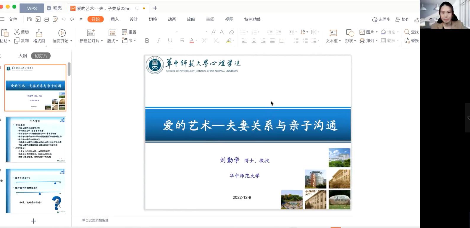 在腾讯会议组织了幸福公管建设能力提升讲座,华中师范大学教授刘勤学做了“爱的艺术—夫妻关系和亲子沟通”的主题讲座,司机会所