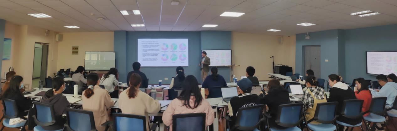 2021级土地资源管理专业黄登赢、苏超两位同学联系自身的研究方向,分别针对研究中提到的用作饲料的大豆比重、不确定性分析等问题提出了疑惑。左成超老师对同学们的提问一一进行解答。他谈到,用作饲料的大豆的供需关系容易存在不平衡现象,在研究过程中要尽可能地收集到最真实的数据,以此确保不确定性和误差在合理的范围内。此外,他还以研究中的粮食需求量数据为例,阐述了如何对无法控制的外部因素变化与影响进行估计,进一步剖析了不确定分析的内涵。