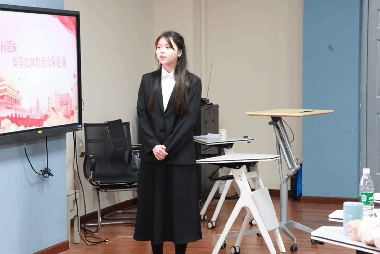 党务策宣部承办,活动共有来自本科生党支部的8名参赛者参与,土地资源管理本科生党支部书记倪含荞老师、行政管理本科生党支部书记朱杰老师、信息管理与信息系统本科生党支部书记王怡诺老师受邀担任本次大赛评委,主持团高梓竣、沈阳主持本次比赛。