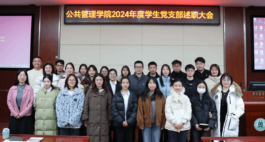举办2024年度学生党支部述职大会。院党委副书记樊华,辅导员徐冠博、樊林玉、倪含荞、王怡诺、朱杰及司机会所