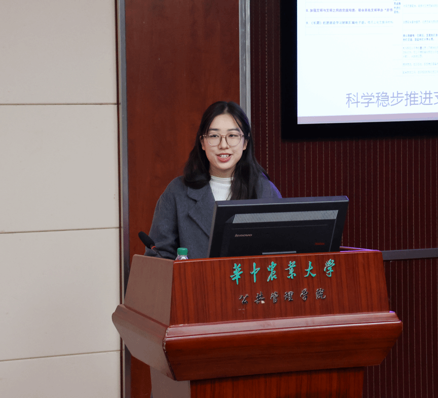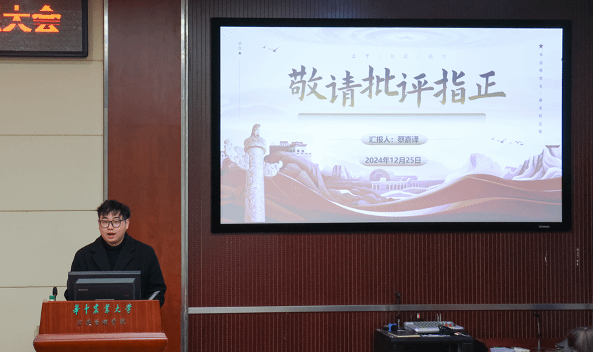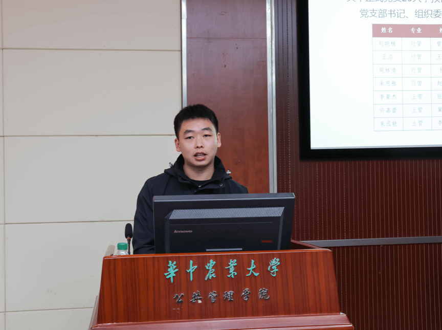 行政管理本科生党支部学生书记蔡嘉译指出,党支部全体党员同志在过去一年的工作中,始终坚持以“四抓四强”为原则,抓学习强铸魂、抓联建强本色、抓实践强发展、抓服务强担当,他表示党支部将在未来不断守正创新、砥砺前行。