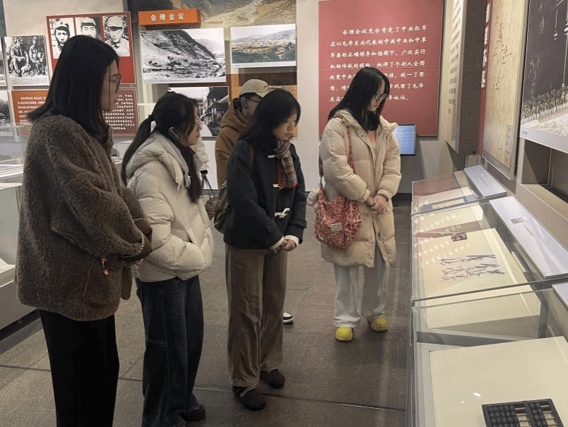 走出会址小楼,师生们前往遵义会议陈列馆,在一幅幅图片、一件件文物、一个个场景复原中,重温万里长征的艰辛历程。从第五次反“围剿”的失利,到血染湘江的壮烈牺牲,直至遵义会议的拨乱反正,每一段历史都让师生们驻足沉思、心生敬畏。讲解员细致解读了遵义会议召开的时代背景、激烈讨论的过程及其重大历史意义,深入阐释了会议如何确立毛泽东同志在党中央和红军的领导地位,如何形成符合中国革命实际的正确路线。通过学习,师生们深刻理解了长征作为“宣言书、宣传队、播种机”的伟大内涵,精准领悟了“坚定信念、坚持真理、独立自主、团结统一”的遵义会议精神,以及“把全国人民和中华民族的根本利益看得高于一切,坚定革命的理想和信念,坚信正义事业必然胜利”的长征精神,从革命先辈的奋斗历程中汲取了奋进力量,为今后立足专业、奉献担当筑牢了精神根基。