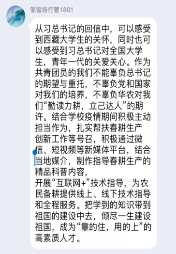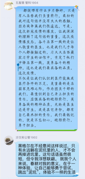 学生回信”精神研讨会,由于正处疫情期间,本次研讨会采用线上形式,在QQ群内进行学习讨论。