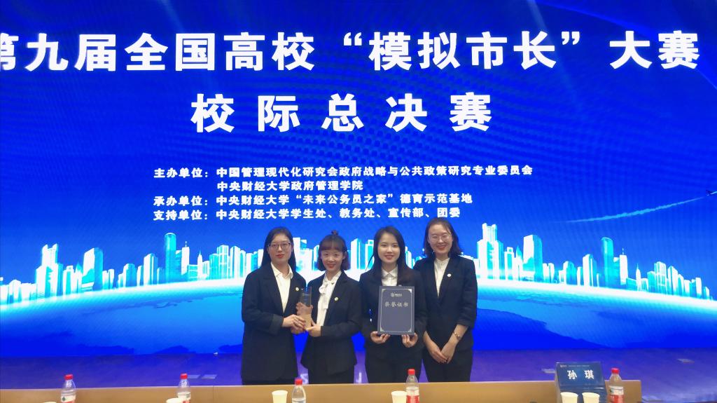 核心提示:11月24日,第九届全国高校“模拟市长”大赛校际总决赛在中央财经大学学术会堂402举行,我院18级教育经济与管理专业研究生刘梦锜所在的“银杏助力队”(香港教育大学)荣获一等奖。