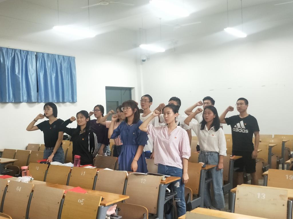 信管本科生党支部在校二十四节气柱广场开展主题党日活动。在入党宣誓环节,两名支部成员手展党旗,其余七名支部成员洪亮坚定的声音在骄阳下响起。随后,支部全体党员共同观看了快闪纪录片《我和我的祖国》,九名支部党员围站一圈,手中挥动五星红旗,学唱歌曲《我和我的祖国》,以音符寄托爱国热情,用歌声表达爱国情怀。活动结束后,支部成员周文静说:“重温入党誓词,让我再次感受到当初入党时的真诚和激情,有种无形的力量感染着我,使我更加坚定自己的理想信念,也指引着我去无私奉献,以更加饱满的状态投身为同学、为人民服务的工作之中。”