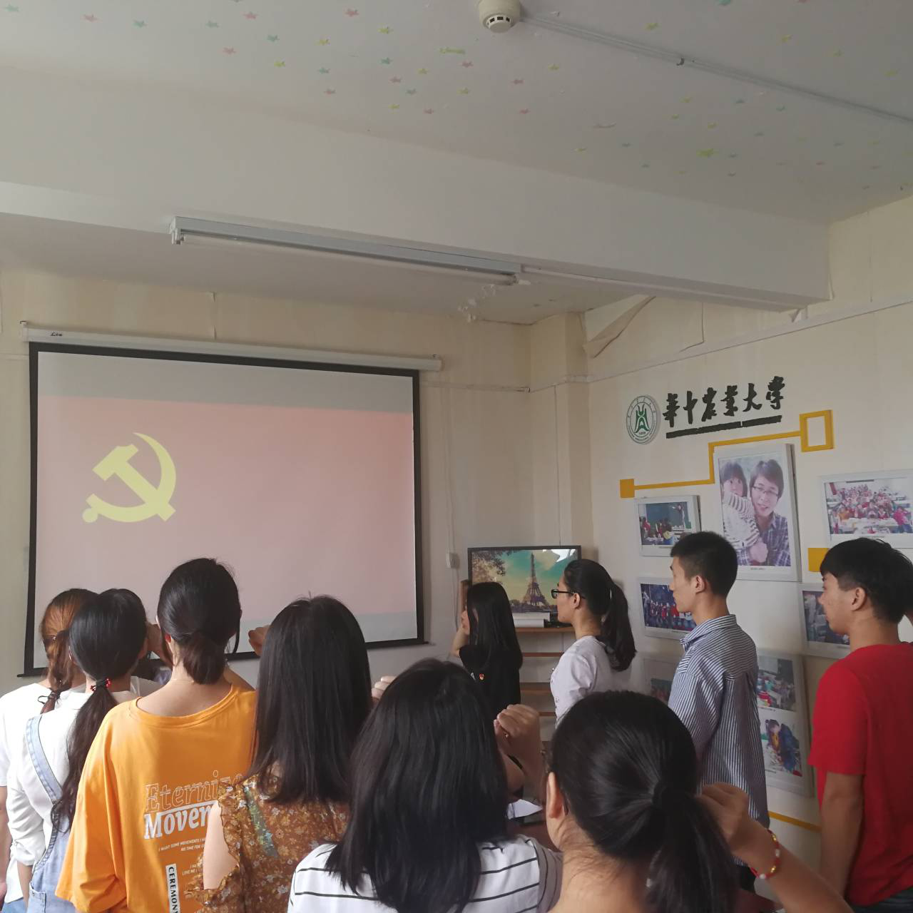 工程管理本科生党支部和行政管理本科生党支部联合开展主题党日活动。工程党支部王莹分享了在军训日出前拍摄的国旗照片,表达了强烈的祖国自豪感和对祖国七十华诞的深切祝福。行管支部连世娇分享了在华农狮子山和南湖边拍摄的照片,认为当代青年应心怀祖国,充分发挥专业特长,为中国梦的实现贡献华农智慧和力量。工程党支部王旭和行管党支部张玮婷,分别分享了校园内图书馆和世界之窗在一天内不同时刻的照片,表达对华农深切的眷恋和对光明未来的信心和勇气。