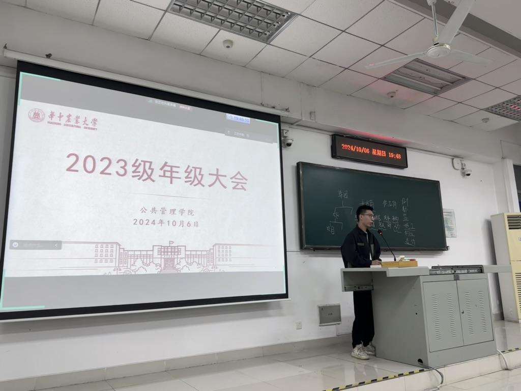 2023级年级大会在三教C105教室举行,全体2023级本科生参与会议,会议由辅导员倪含荞主持。本次会议还邀请了两位2018届毕业生李林洋、高永发和两位2024届毕业生李圣钰、方心琪参加,并与现场师生进行了互动交流。