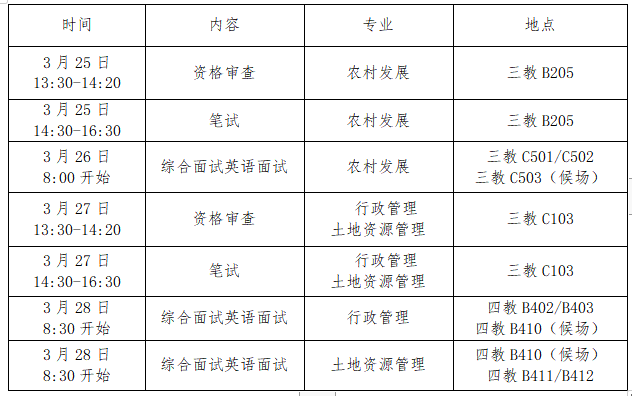 复试时间安排在3月25日—3月28日,考生不按时参加复试的,视为自动放弃复试资格。