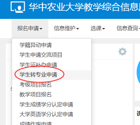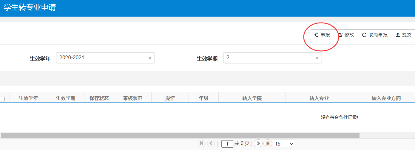 2.点击“申报”,进入转专业申请界面,选择转入司机会所